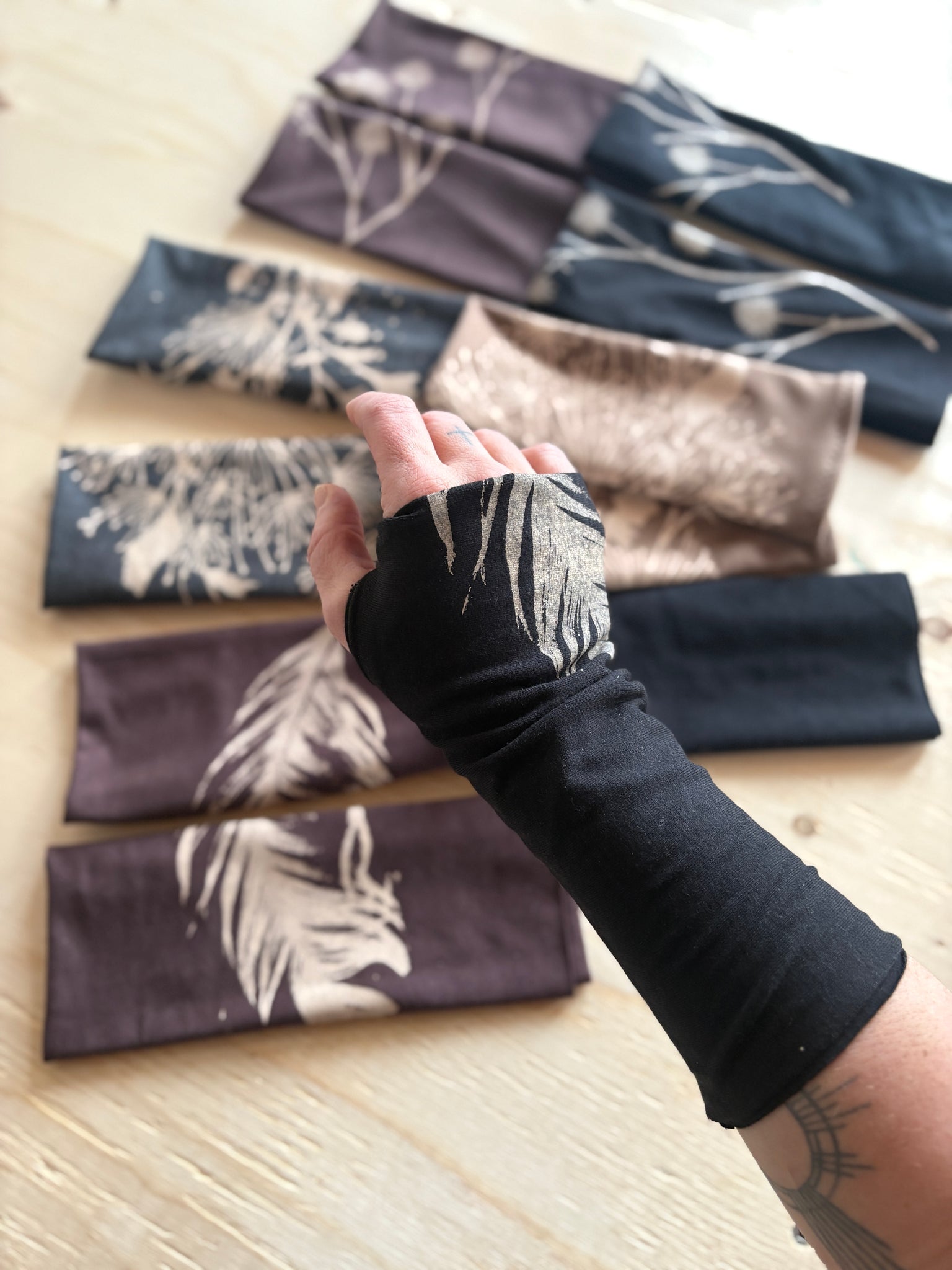 *NEW* fingerless gloves in the softest bamboo jersey! I’ve doubled up the jersey for these gloves and have individually hand-pulled each screen print.